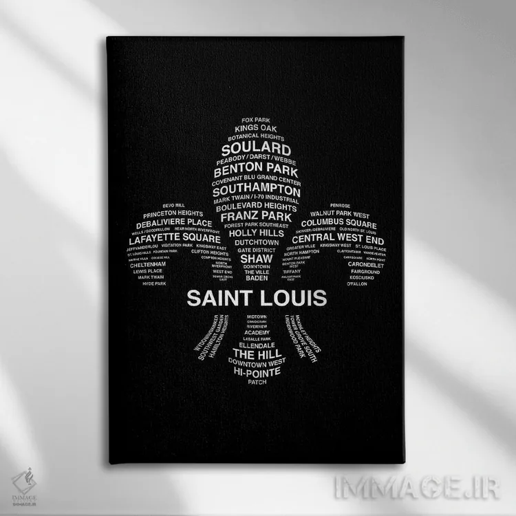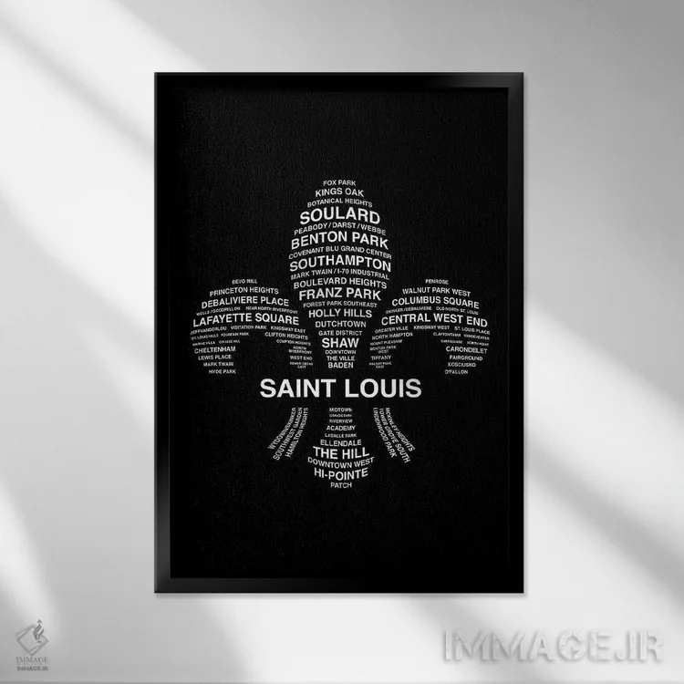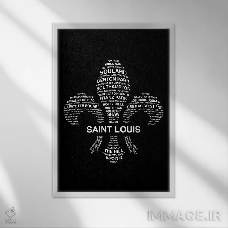 «محلههای سنت لوئیس» اثرِ «پرینتهای بنتون پارک (استودیو/گالری هنری)» یک قاب مدرن و کنترلشده است؛ سیاهوسفیدِ دیجیتال کمک میکند موضوعِ این اثر در فضاهای ساده بدرخشد.