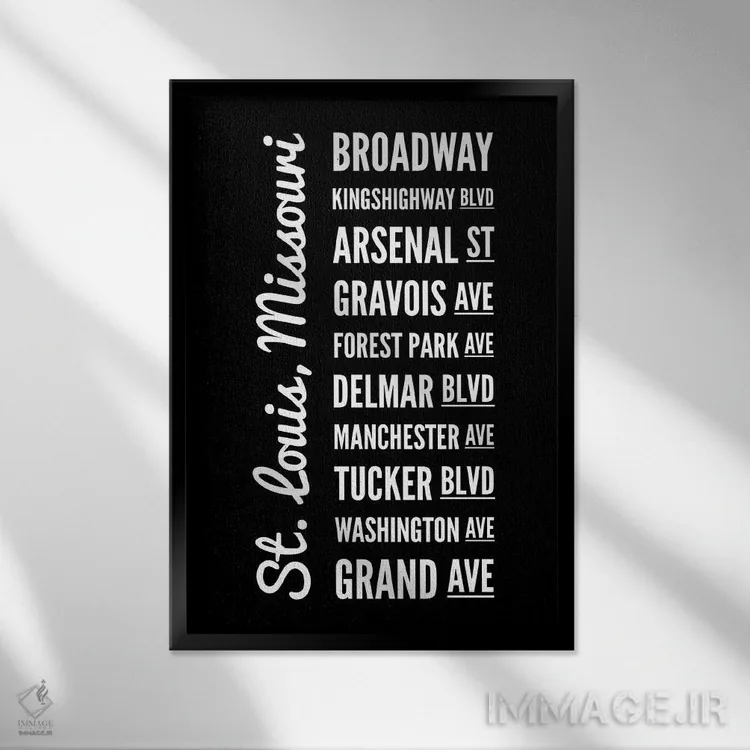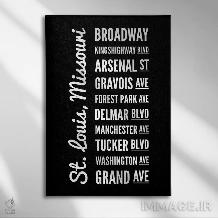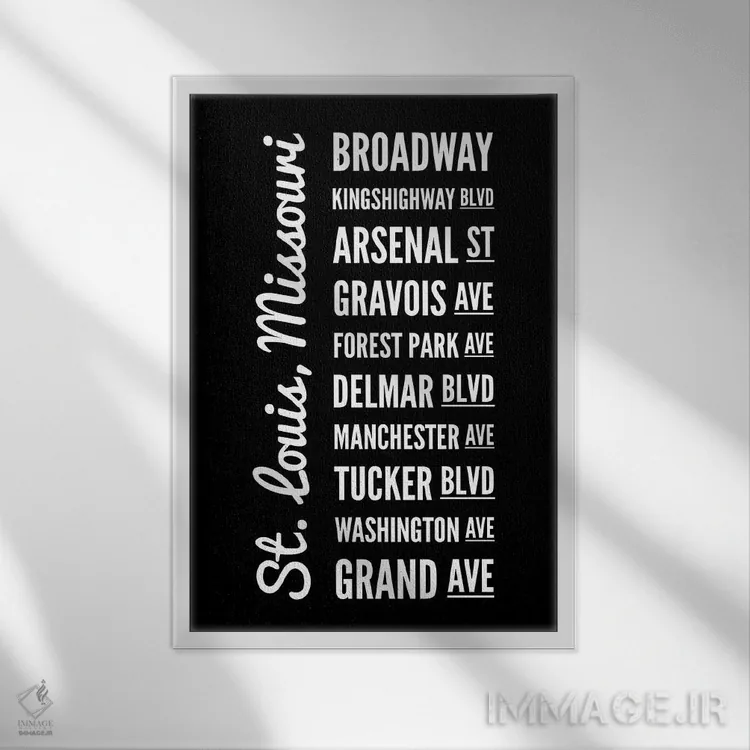 «خیابانهای سنت لوئیس» اثرِ «پرینتهای بنتون پارک (استودیو/گالری هنری)» با حالوهوای هنر دیجیتال سیاهوسفید، برای فضاهای مدرن و مینیمال انتخابی دقیق و امروزی است.