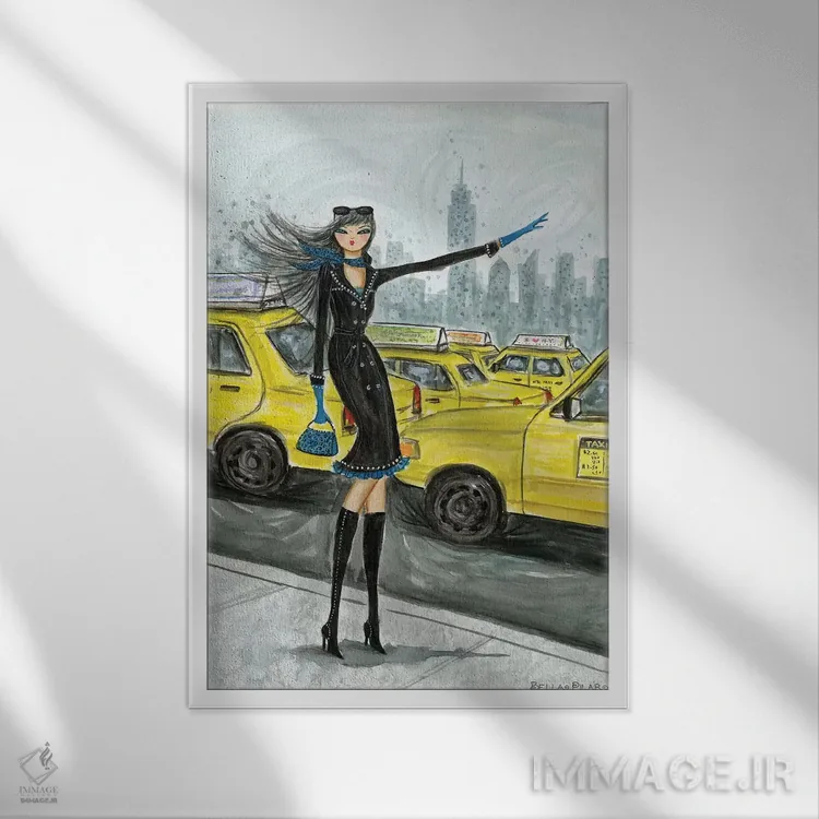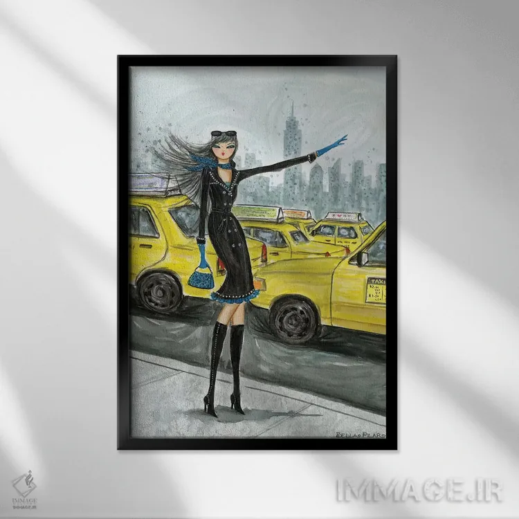 تابلو تاکسی نیویورک شماره ۱ اثر بلا پیلار - نمای قاب‌دار مشکی