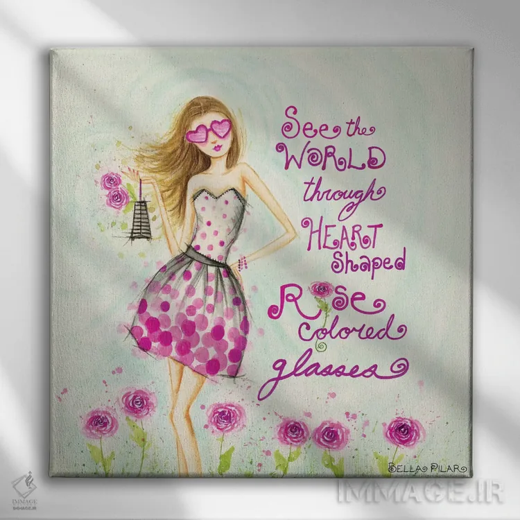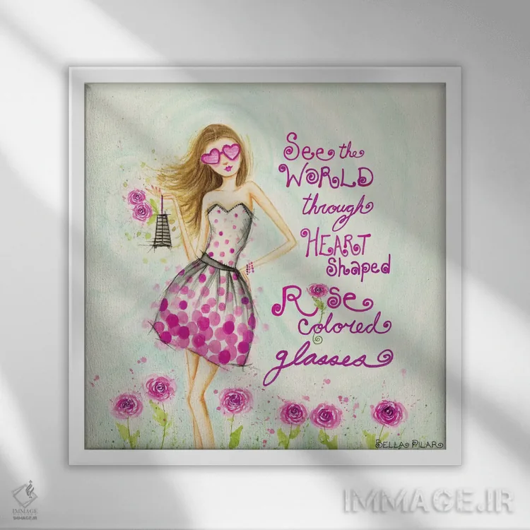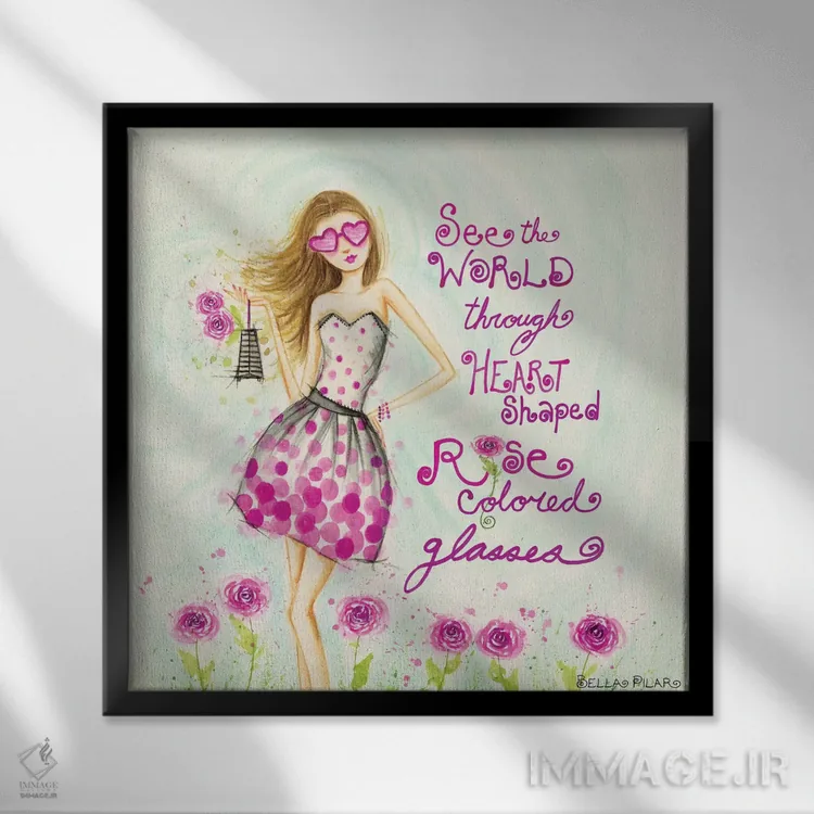 تابلو عینک قلبی شکل به رنگ گل رز اثر بلا پیلار