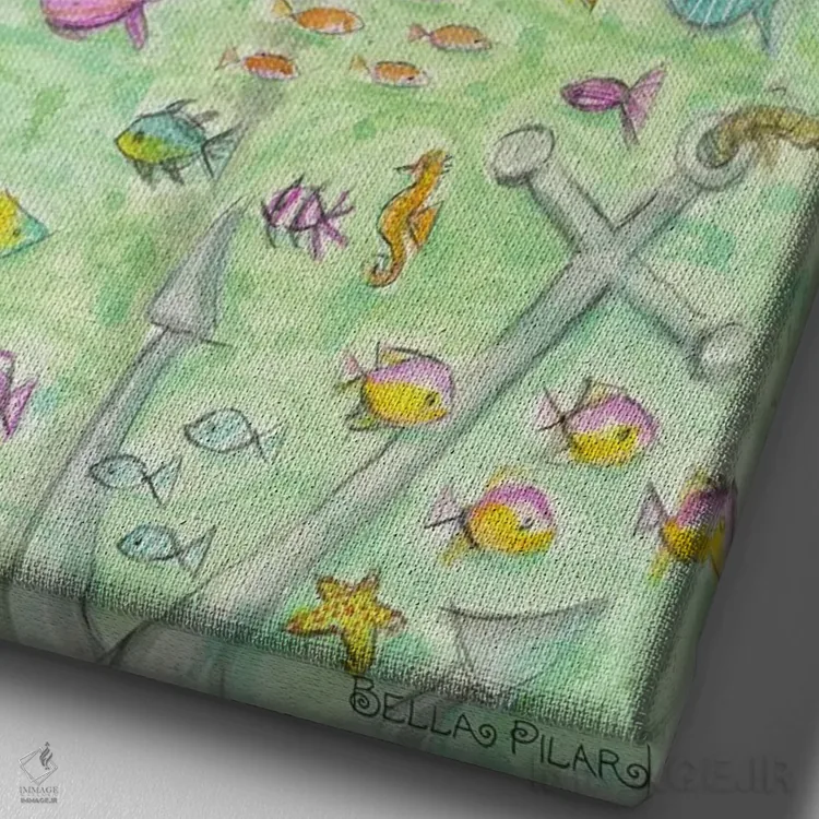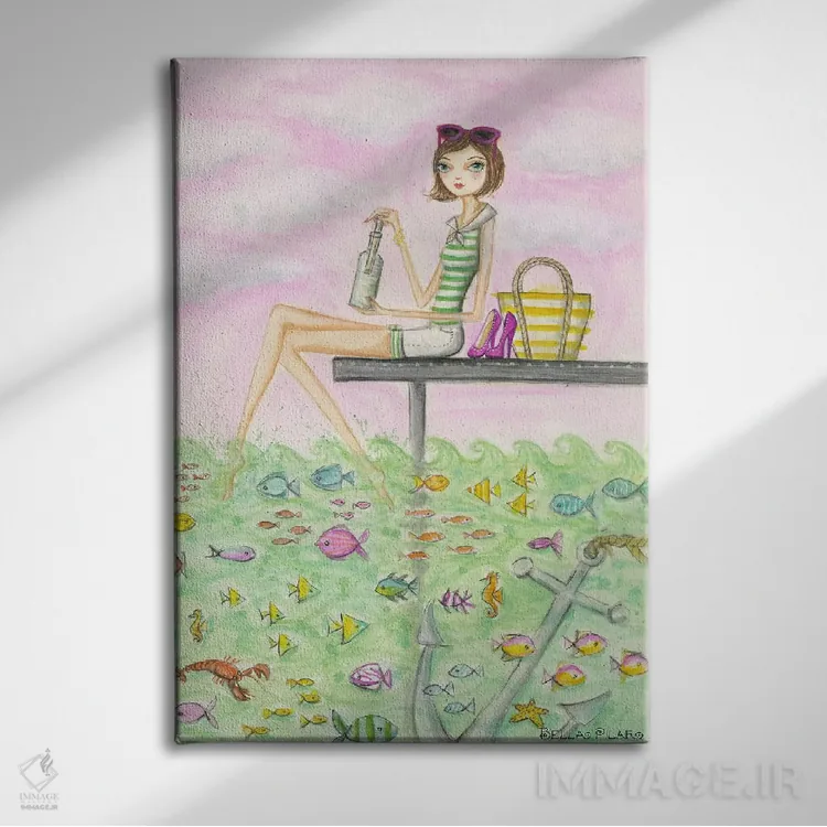 «آهای پیام مدِلین» اثرِ «بلا پیلار» با حالوهوای این اثر و لحنِ دکور ساحلی، فضا را روشنتر و سبکتر نشان میدهد—مناسبِ نشیمنهای آفتابگیر.
