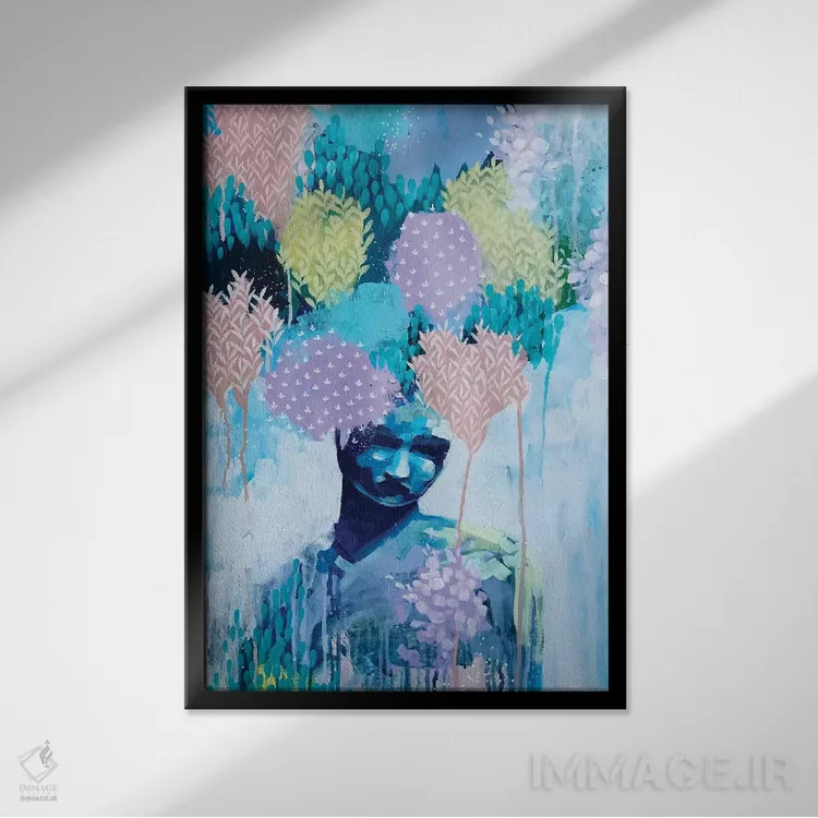 براساس پالت ترکیبی اثر، قاب تیک گرم (چوبی) پیشنهاد اول است و مشکی مات (فریم متوسط) مکمل. برای سفارشهای پروژهای با ابعاد و قابهای اختصاصی با ایماژ در تماس باشید.
