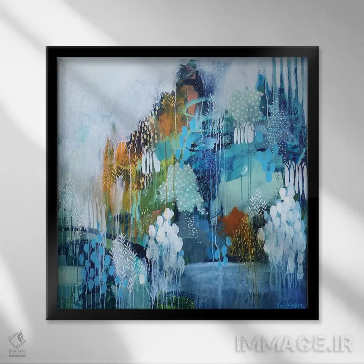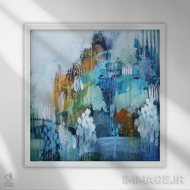 براساس پالت ترکیبی اثر، قاب تیک گرم (چوبی) پیشنهاد اول است و مشکی مات (فریم متوسط) مکمل. برای سفارشهای پروژهای با ابعاد و قابهای اختصاصی با ایماژ در تماس باشید.