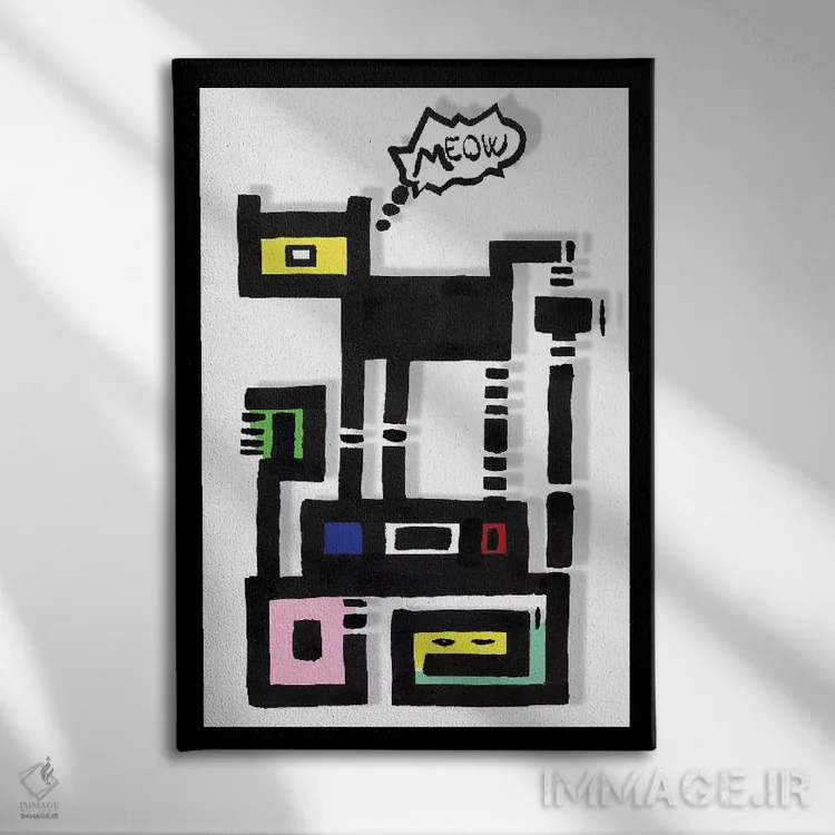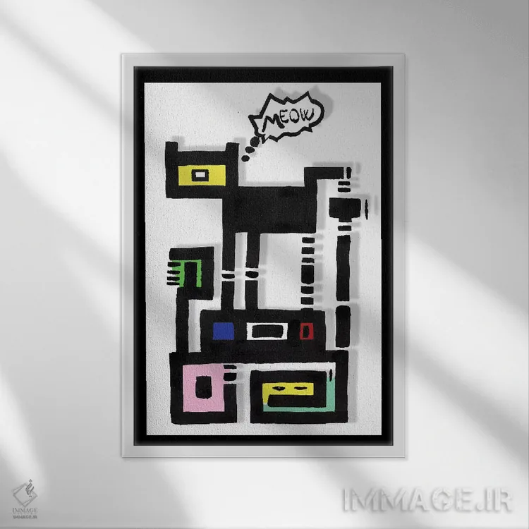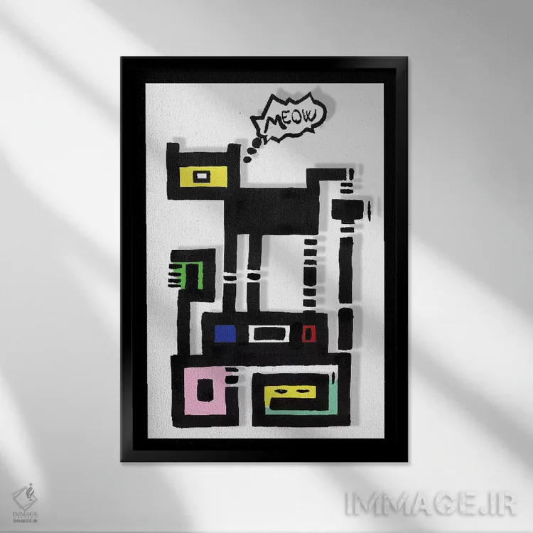 تابلو گربهٔ شهری شاخدار اثر باروف - نمای قاب‌دار مشکی
