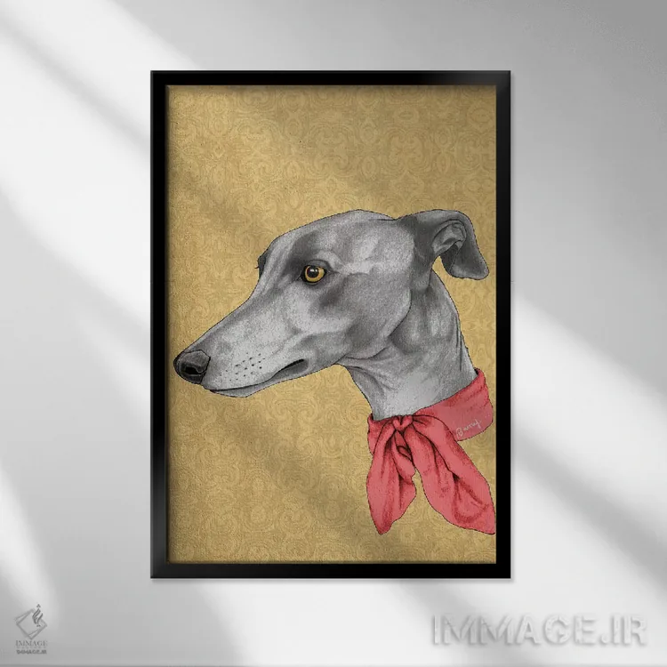 تابلو تازی با شال گردن اثر باروف - نمای قاب‌دار مشکی