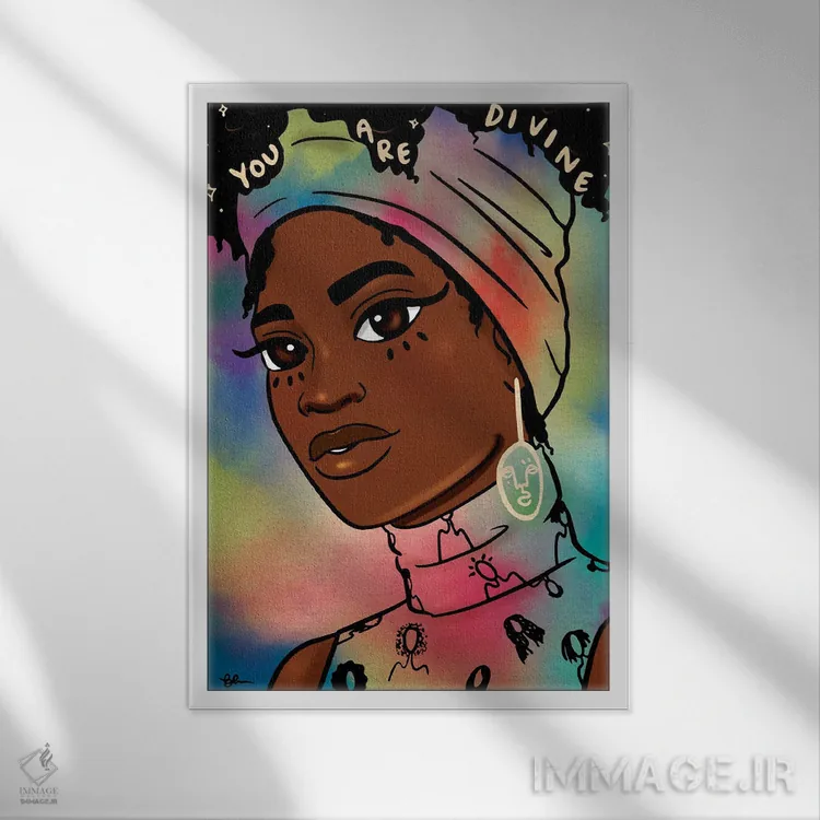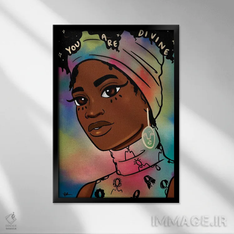 «تو الهی هستی» اثرِ «بری پیپنز» ترکیب خوبی برای کنار قابهای ساده و خطوط تمیزِ دکوراسیون است.