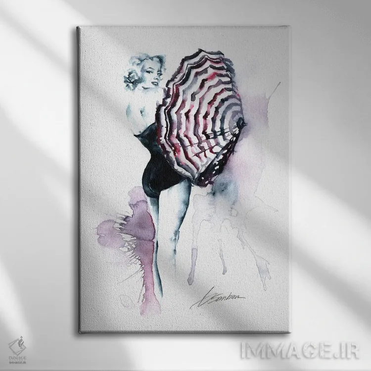 «مرلین مونرو با چتر» اثرِ «برندن سنبورن» در کنار مبلمان تیره یا روشن، خوب مینشیند؛ چون تاکیدش روی فرم و کیفیت بصری است.