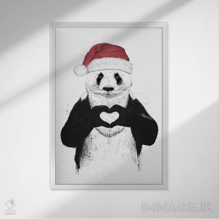 تابلو پاندای بابانوئل اثر بالازس شولتی - نمای قاب‌دار سفید