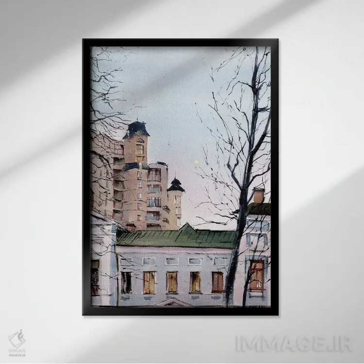 تابلو کیف هنگام عصر (پایتخت اوکراین) اثر بوگدان شیپتنکو - نمای قاب‌دار سفید