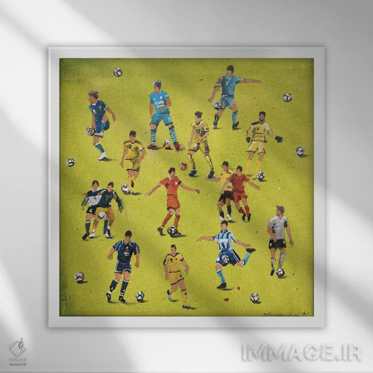 این تابلو تزئینی با موضوعِ این اثر برای هدیه و دکورهای روشن همیشه جواب میدهد: «بازیکنان فوتبال» اثرِ «بوگدان شیپتنکو».