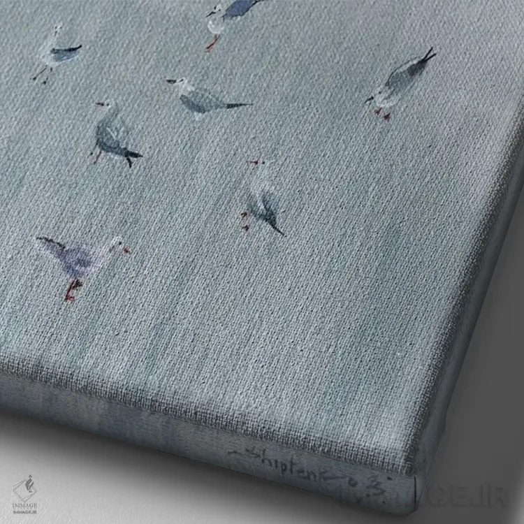 تابلو مرغان دریایی روی خاکستری اثر بوگدان شیپتنکو - نمای نزدیک بافت بوم