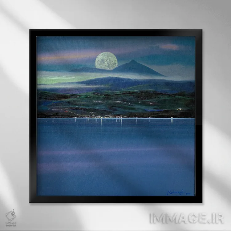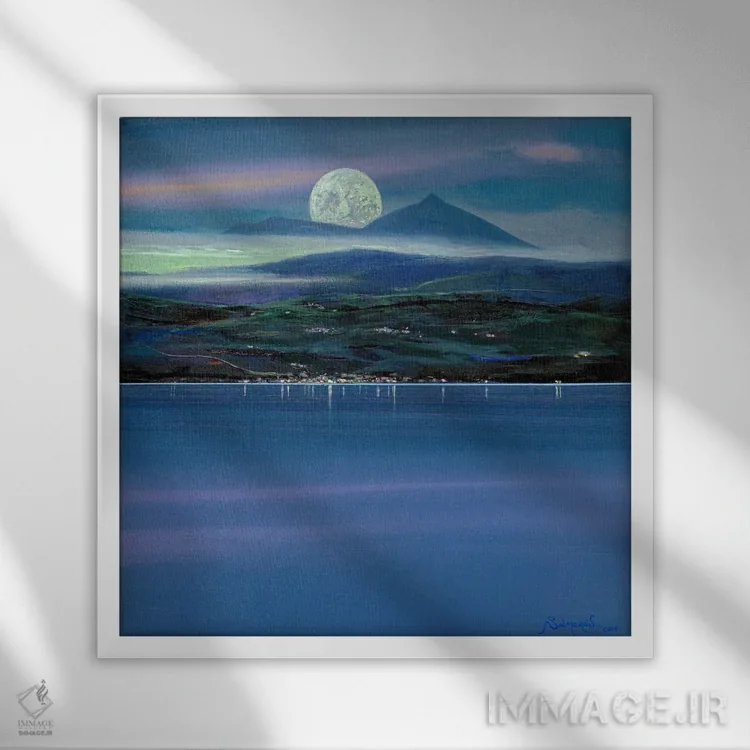 براساس پالت سرد اثر، قاب سفید مات (فریم باریک) پیشنهاد اول است و نقرهای برسخورده (متالیک) مکمل. برای سفارشهای پروژهای با ابعاد و قابهای اختصاصی با ایماژ در تماس باشید.