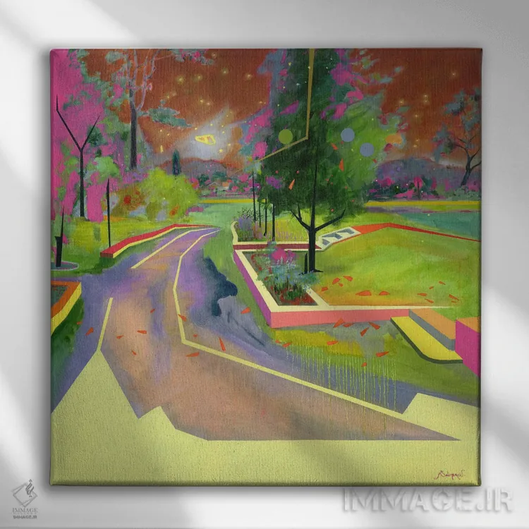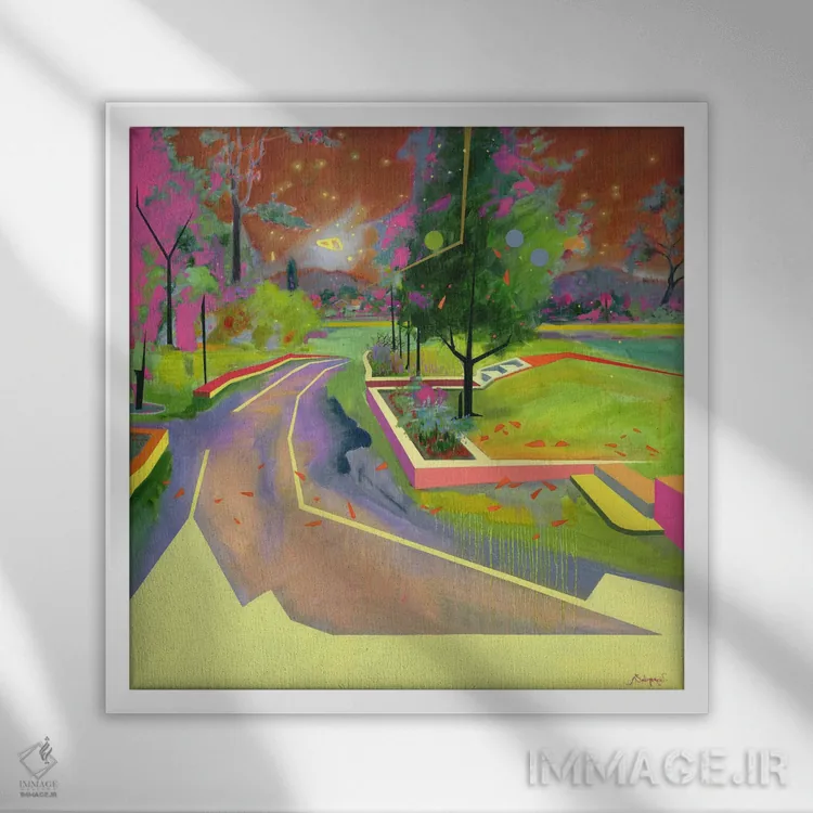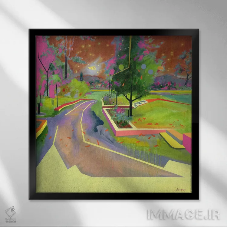براساس پالت ترکیبی اثر، قاب تیک گرم (چوبی) پیشنهاد اول است و مشکی مات (فریم متوسط) مکمل. برای سفارشهای پروژهای با ابعاد و قابهای اختصاصی با ایماژ در تماس باشید.