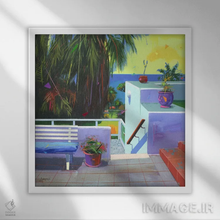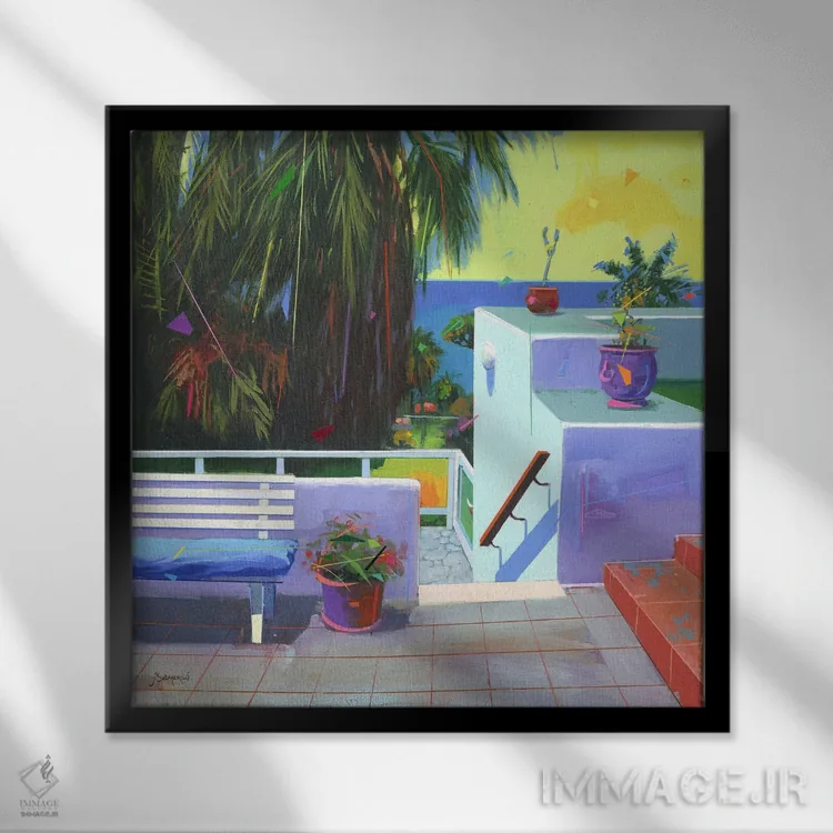 براساس پالت ترکیبی اثر، قاب تیک گرم (چوبی) پیشنهاد اول است و مشکی مات (فریم متوسط) مکمل. برای سفارشهای پروژهای با ابعاد و قابهای اختصاصی با ایماژ در تماس باشید.