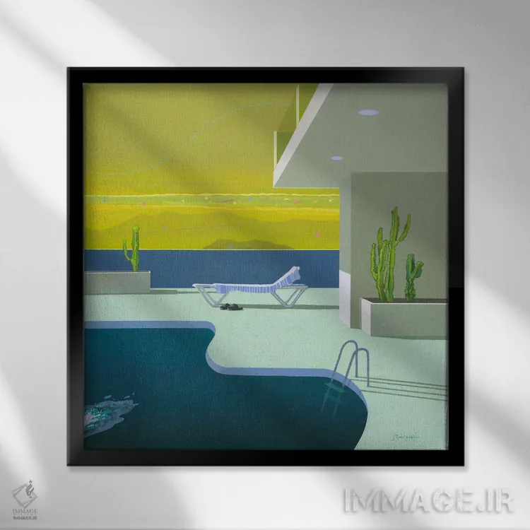 براساس پالت سرد اثر، قاب سفید مات (فریم باریک) پیشنهاد اول است و نقرهای برسخورده (متالیک) مکمل. برای سفارشهای پروژهای با ابعاد و قابهای اختصاصی با ایماژ در تماس باشید.