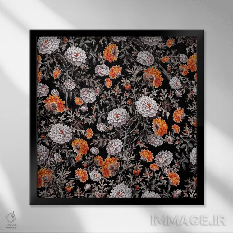 براساس پالت گرم اثر، قاب تیک گرم (چوبی) پیشنهاد اول است و مشکی مات (فریم متوسط) مکمل. برای سفارشهای پروژهای با ابعاد و قابهای اختصاصی با ایماژ در تماس باشید.