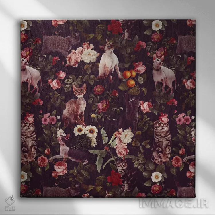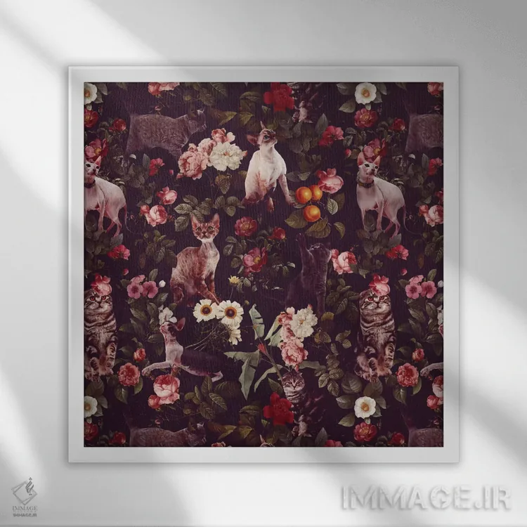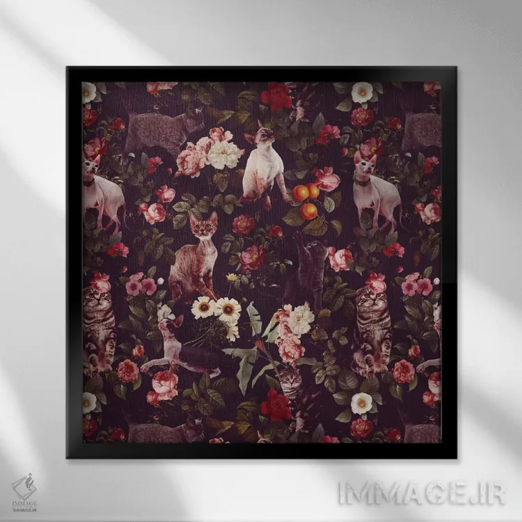 برای دکورهای صمیمی، «طرح گل و گربهها» اثرِ «برجو کورکمازیورک» بافت و جزئیات را طوری نشان میدهد که نگاه میماند؛ برای اتاق کودک (بدون لحن کودکانه) انتخابی خوشسلیقه است. هم فضا را گرم میکند، هم شلوغش نمیکند.