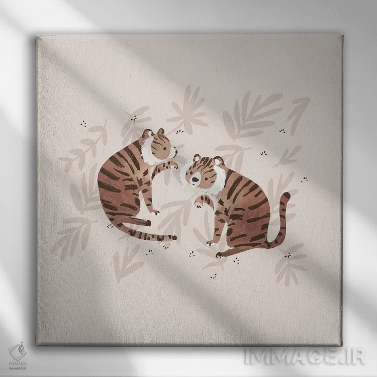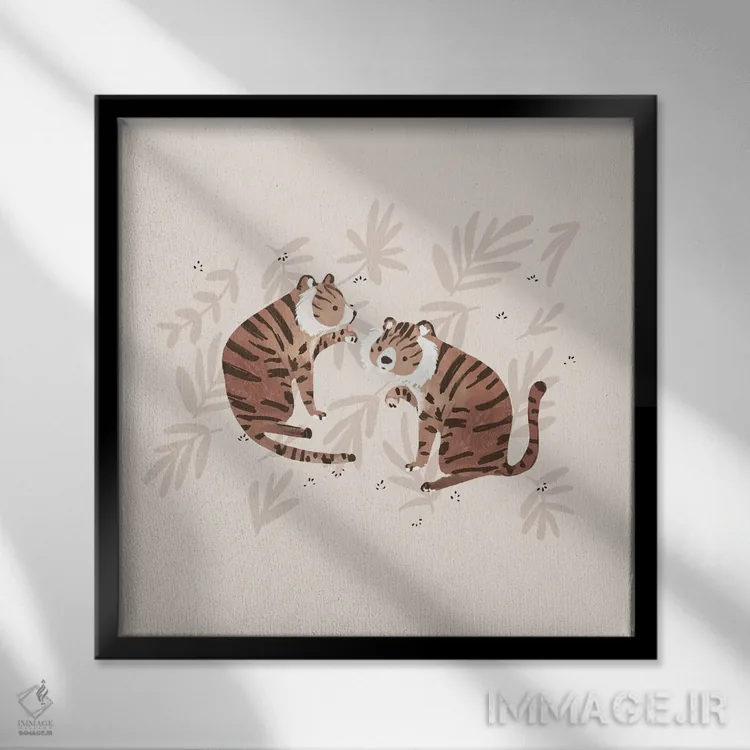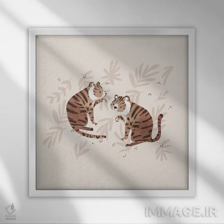 تابلو دو ببر اثر برنادت اوربانویک - نمای قاب‌دار سفید