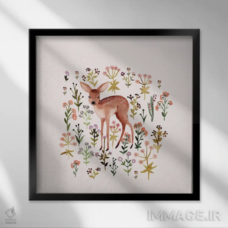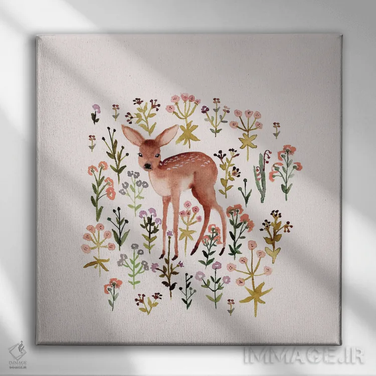 تابلو آهوچه و گل‌ها اثر برنادت اوربانویک - نمای پرسپکتیو محصول