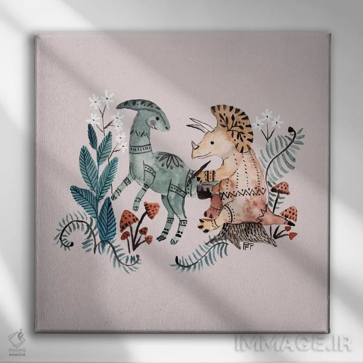 تابلو دایناسورهای قبیله‌ای اثر برنادت اوربانویک - نمای پرسپکتیو محصول