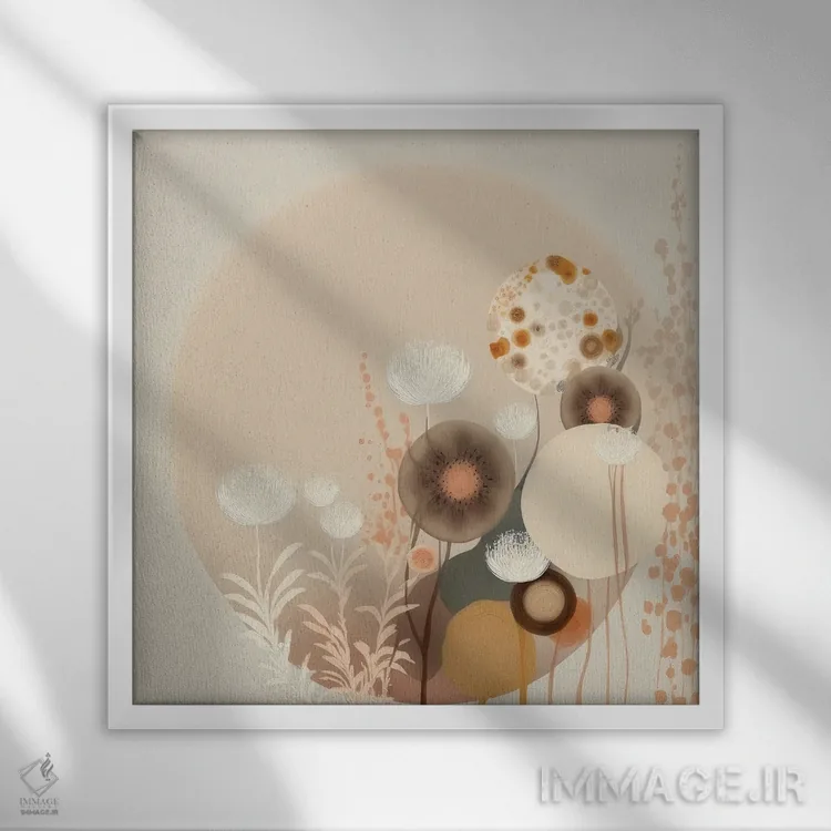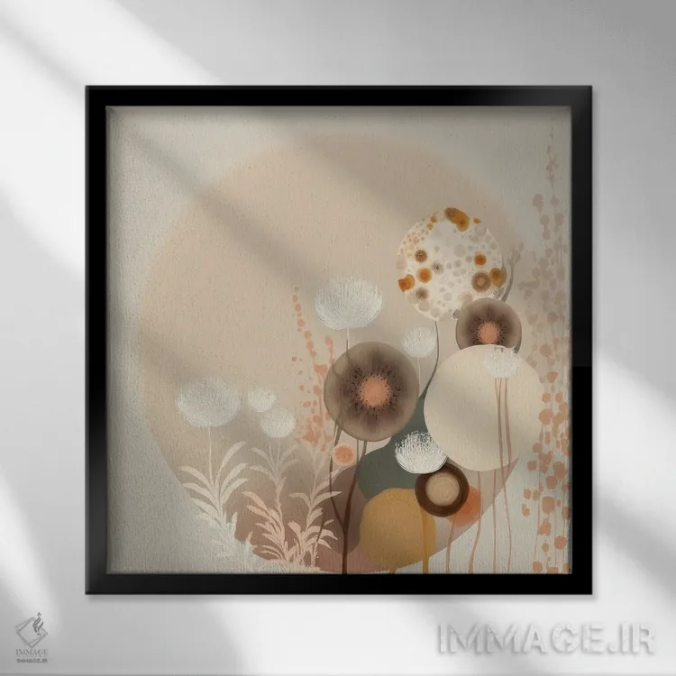 براساس پالت گرم اثر، قاب بلوط روشن (چوبی) پیشنهاد اول است و استخوانی ملایم مکمل. برای سفارشهای پروژهای با ابعاد و قابهای اختصاصی با ایماژ در تماس باشید.