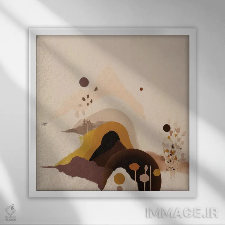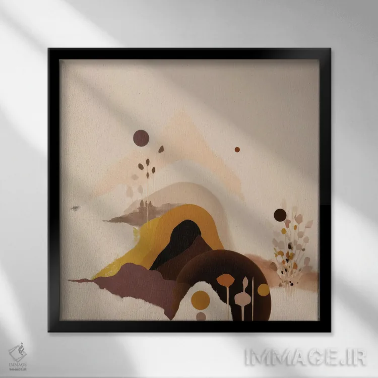 براساس پالت گرم اثر، قاب بلوط روشن (چوبی) پیشنهاد اول است و استخوانی ملایم مکمل. برای سفارشهای پروژهای با ابعاد و قابهای اختصاصی با ایماژ در تماس باشید.