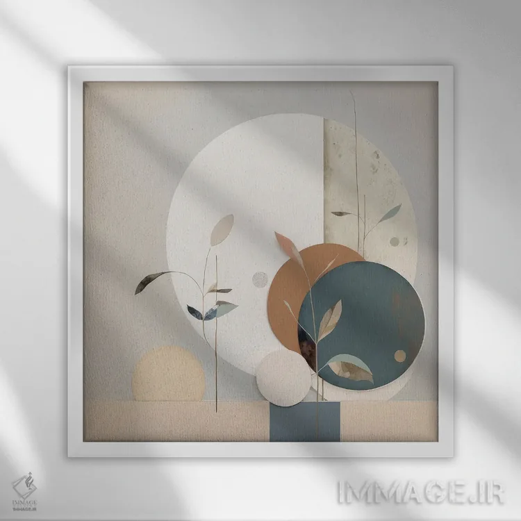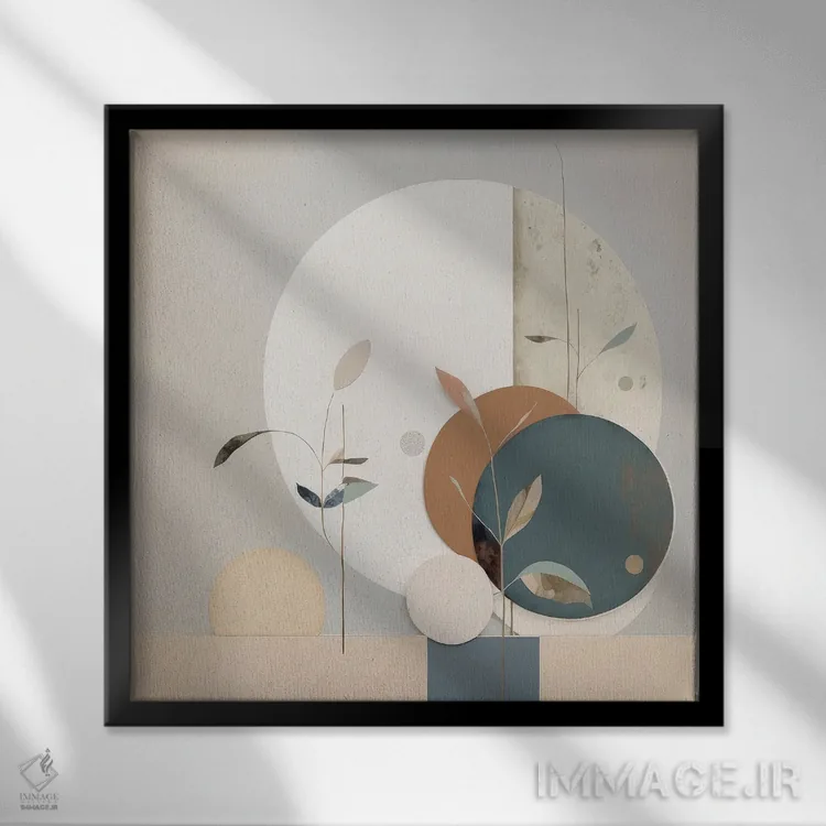 براساس پالت گرم اثر، قاب بلوط روشن (چوبی) پیشنهاد اول است و استخوانی ملایم مکمل. برای سفارشهای پروژهای با ابعاد و قابهای اختصاصی با ایماژ در تماس باشید.