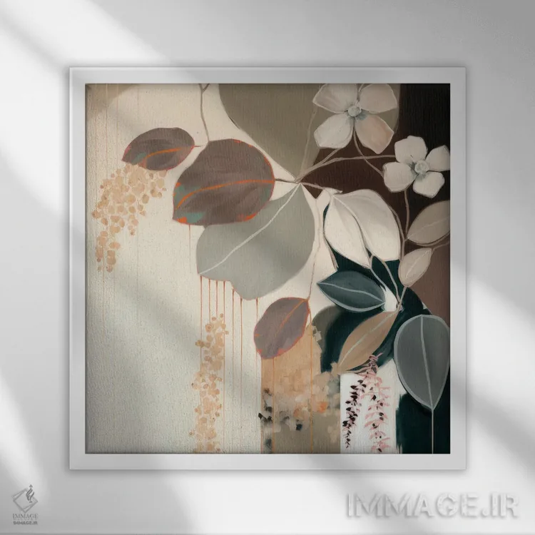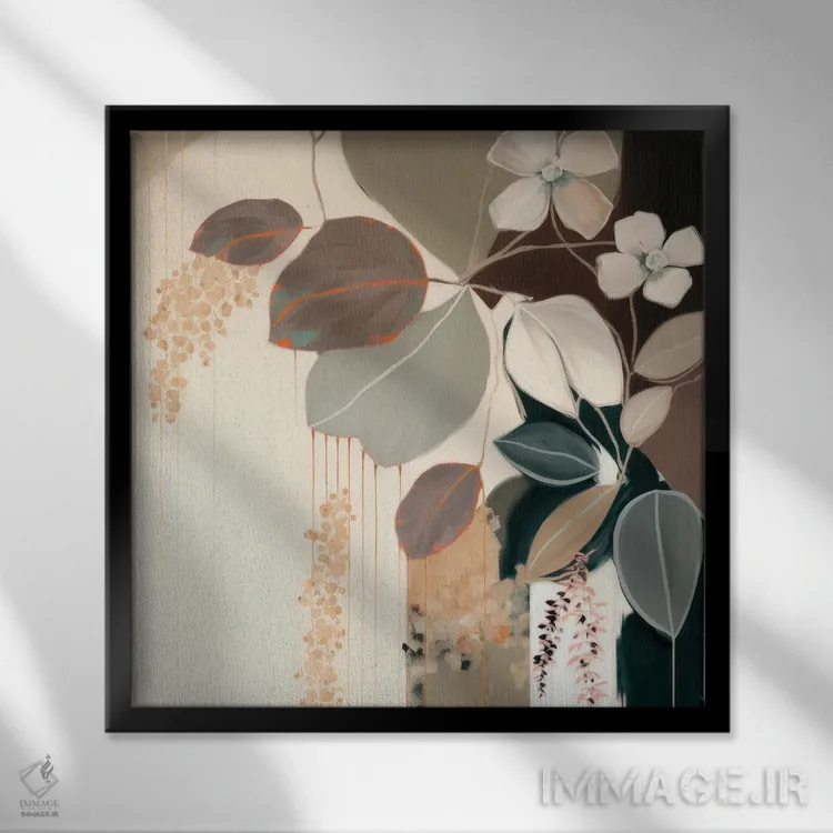 براساس پالت گرم اثر، قاب بلوط روشن (چوبی) پیشنهاد اول است و استخوانی ملایم مکمل. برای سفارشهای پروژهای با ابعاد و قابهای اختصاصی با ایماژ در تماس باشید.