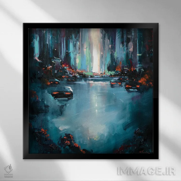 براساس پالت ترکیبی اثر، قاب تیک گرم (چوبی) پیشنهاد اول است و مشکی مات (فریم متوسط) مکمل. برای سفارشهای پروژهای با ابعاد و قابهای اختصاصی با ایماژ در تماس باشید.