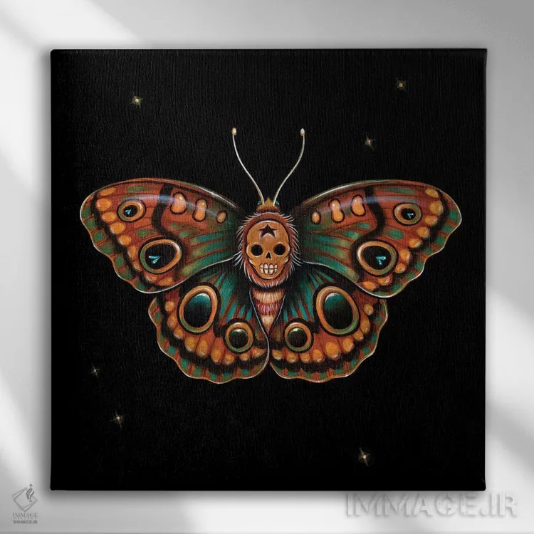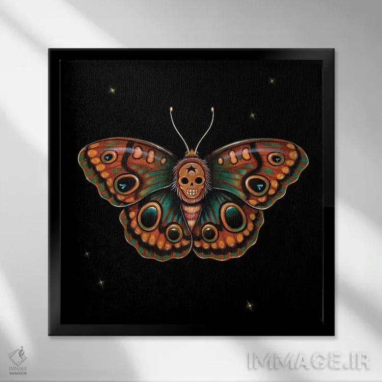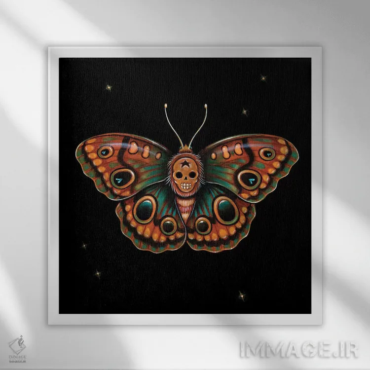 «کالاورا لپیدوپترا (پروانهٔ جمجمهشکل)» اثرِ «کایا کوپمن» از آن کارهاییست که در دکورهای جدیتر (نشیمن رسمی یا دفتر کار) عالی مینشیند.