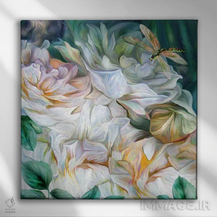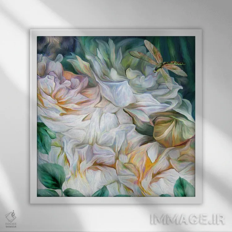 تابلو سنجاقک روی گل رز اثر کارول کاوالاریس