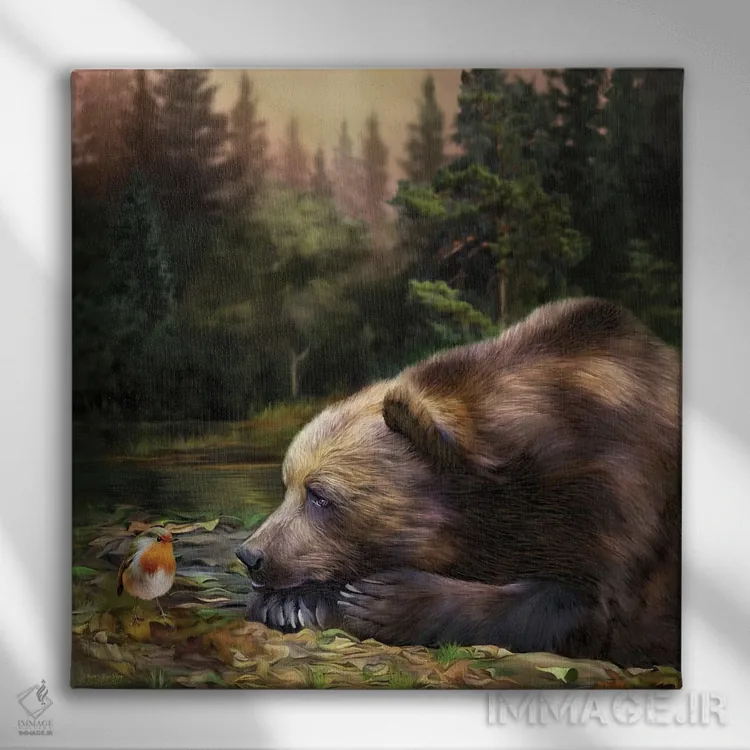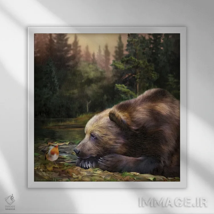 این اثر با عنوان «نمای خرس (زاویهٔ دید خرس)» اثرِ «کارول کاوالاریس» بافت و جزئیات را طوری نشان میدهد که نگاه میماند؛ برای دیوار کنار میز کار انتخابی خوشسلیقه است. به دیوار، قصه میدهد—اما قصهای آرام و شیک.