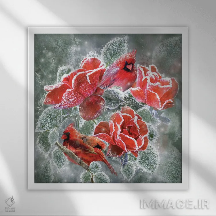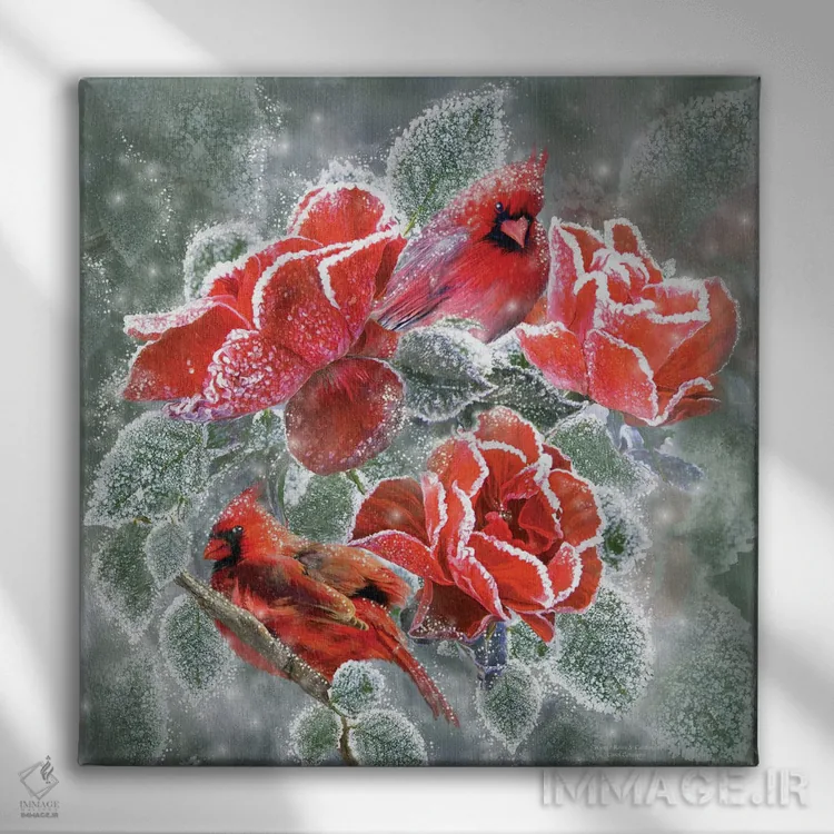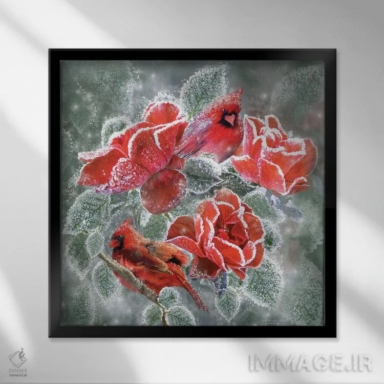 تابلو رزهای زمستانی و مرغ کارباورال اثر کارول کاوالاریس