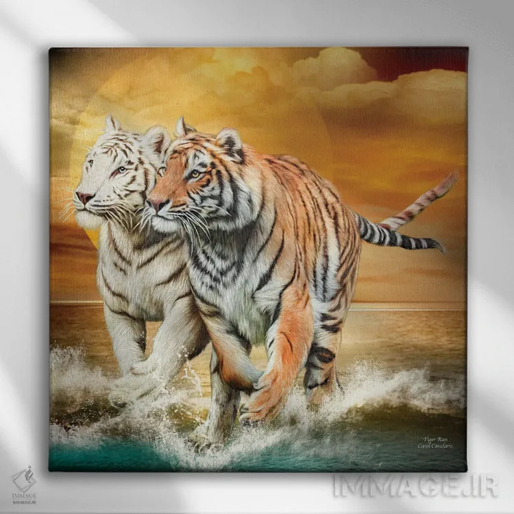 در «دویدن ببر» اثرِ «کارول کاوالاریس»، حضور حیوانات در کنار رنگهای خنثی، تضاد دلچسبی میسازد؛ برای اتاق بازی یا گوشهٔ مطالعه انتخابی خوشسلیقه است. به دیوار، قصه میدهد—اما قصهای آرام و شیک.