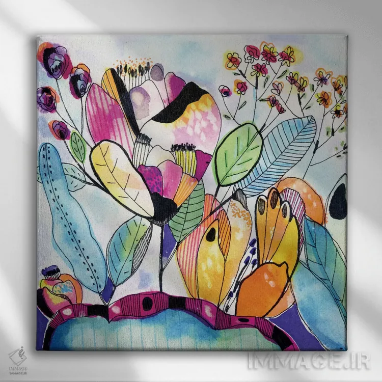 تابلو باغ سورئال اثر کایِنا بلانکا - نمای نزدیک بافت بوم