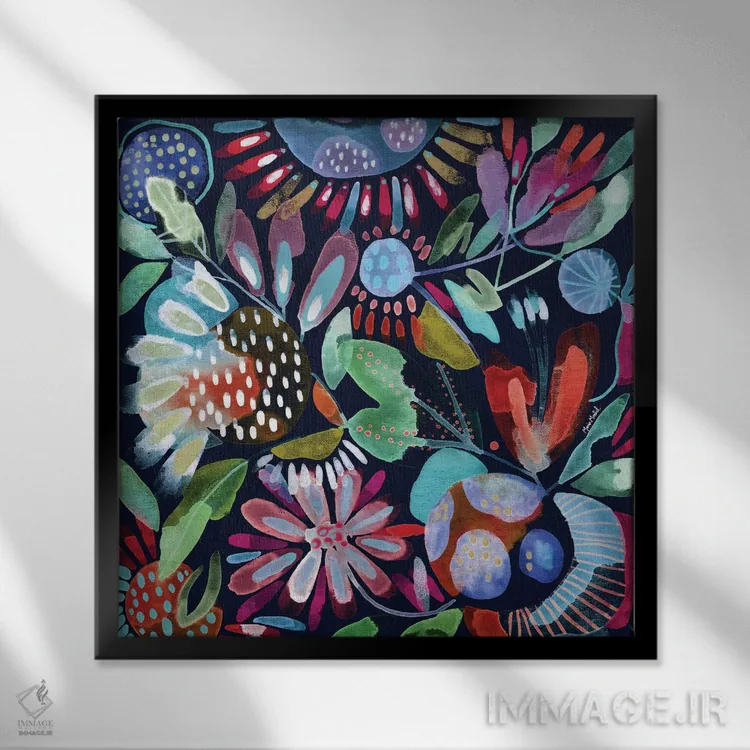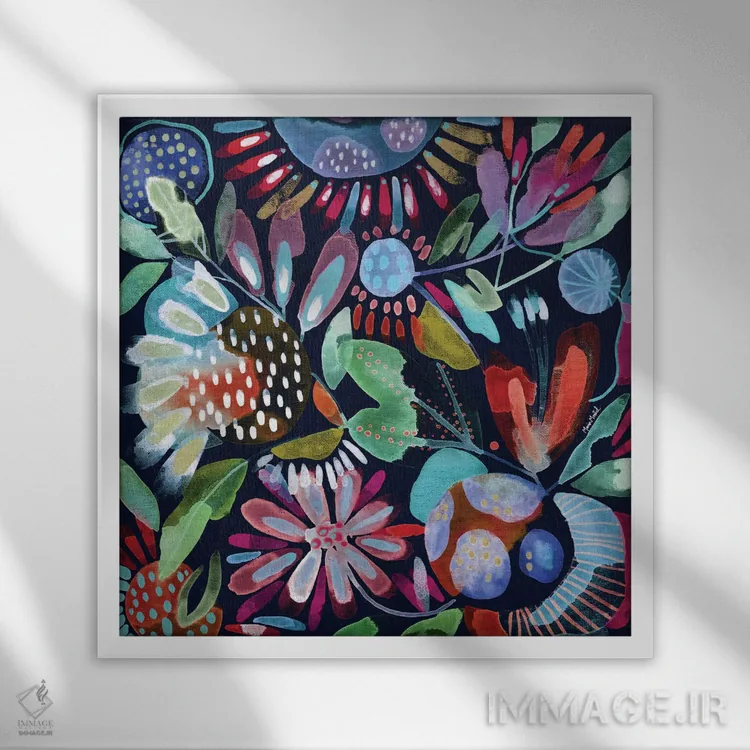 براساس پالت ترکیبی اثر، قاب تیک گرم (چوبی) پیشنهاد اول است و مشکی مات (فریم متوسط) مکمل. برای سفارشهای پروژهای با ابعاد و قابهای اختصاصی با ایماژ در تماس باشید.