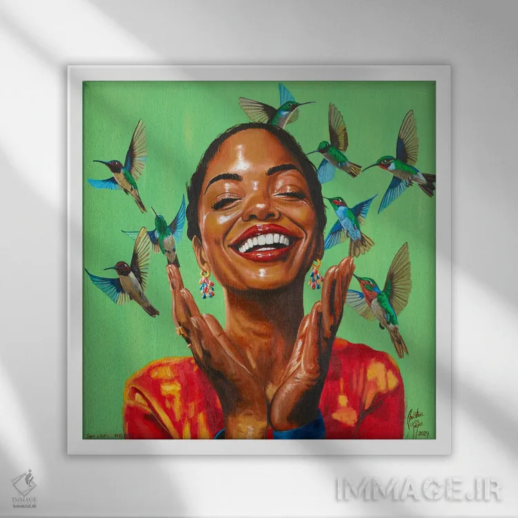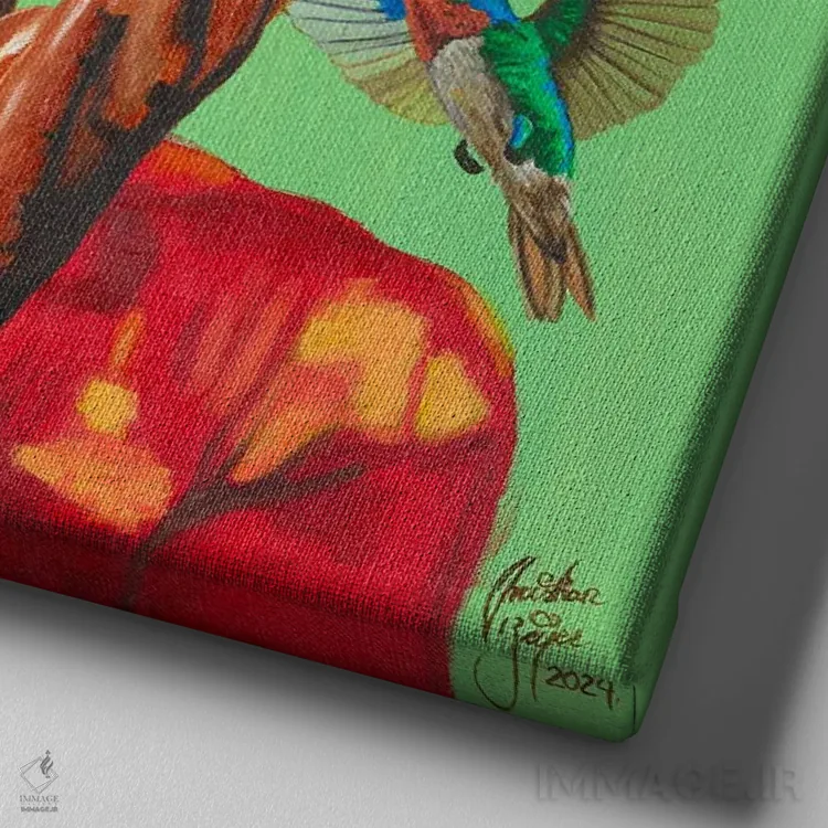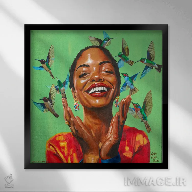 براساس پالت ترکیبی اثر، قاب تیک گرم (چوبی) پیشنهاد اول است و مشکی مات (فریم متوسط) مکمل. برای سفارشهای پروژهای با ابعاد و قابهای اختصاصی با ایماژ در تماس باشید.