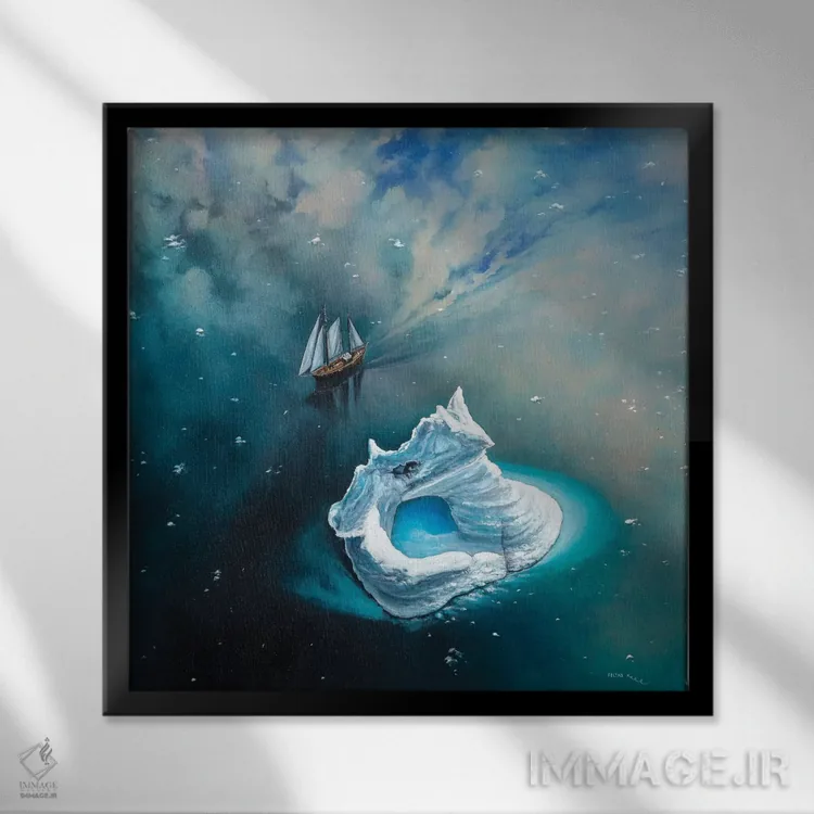 براساس پالت سرد اثر، قاب سفید مات (فریم باریک) پیشنهاد اول است و نقرهای برسخورده (متالیک) مکمل. برای سفارشهای پروژهای با ابعاد و قابهای اختصاصی با ایماژ در تماس باشید.