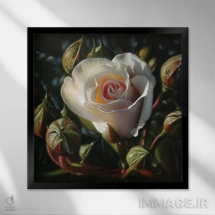 اگر به دکورهای طبیعی علاقه دارید، «گل رز سفید» اثرِ «کالین بوگل» تعادل رنگیِ لطیفی به چیدمان میدهد، برای خانههایی با نور طبیعی گزینهٔ مناسبیست. اگر دنبال «زیباییِ بیصدا» هستید، این اثر همان حس را دارد.