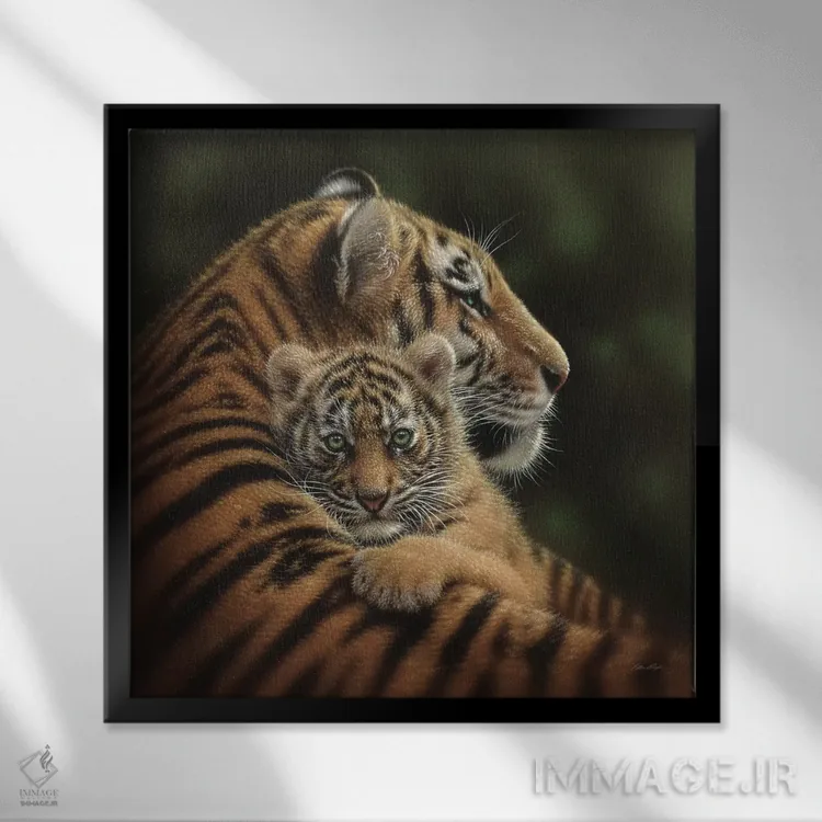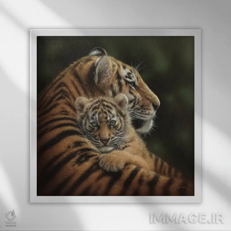 «بچه ببر دوستداشتنی (مربع)» اثرِ «کالین بوگل» از آن کارهاییست که به فضا، گرمیِ ملایم اضافه میکند؛ برای هدیهدادن به دوستداران حیوانات انتخاب خوبیست. برای دیوار گالریوار هم گزینهٔ خوبیست.