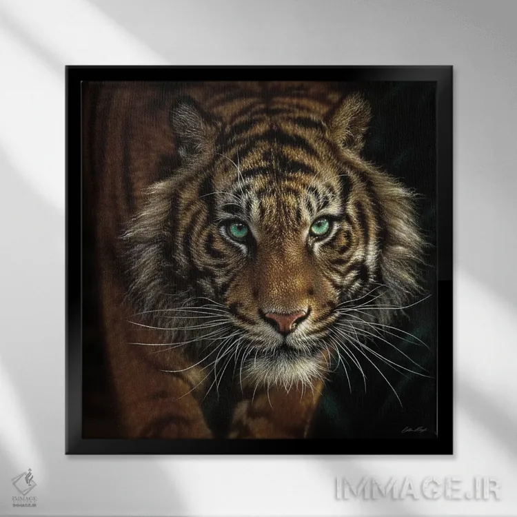 در «چشم ببر (مربع)» اثرِ «کالین بوگل»، حضور حیوانات بدون کودکانه شدن، بازیگوش و خوشپرداخت میماند؛ برای هدیهدادن به دوستداران حیوانات انتخابی خوشسلیقه است. با قاب چوبی یا مشکی، حس مرتبتری پیدا میکند.