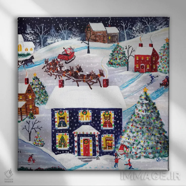 برای دکورهای صمیمی، «بابانوئل و گوزنهای شمالی در شب کریسمس (شریل بارتلی)» اثرِ «شریل بارتلی» حس طبیعت را بیدغدغه وارد خانه میکند؛ برای راهروها و ورودیهای گرم انتخابی خوشسلیقه است. با قاب چوبی یا مشکی، حس مرتبتری پیدا میکند.