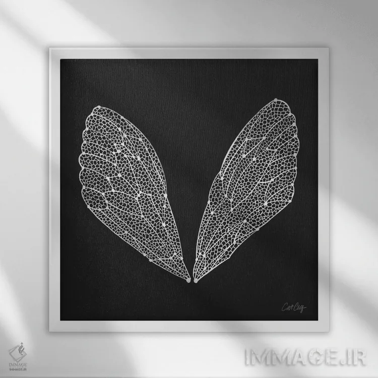 تابلو بال‌های سیکادا سفید اثر کت کوکیلت - نمای قاب‌دار مشکی