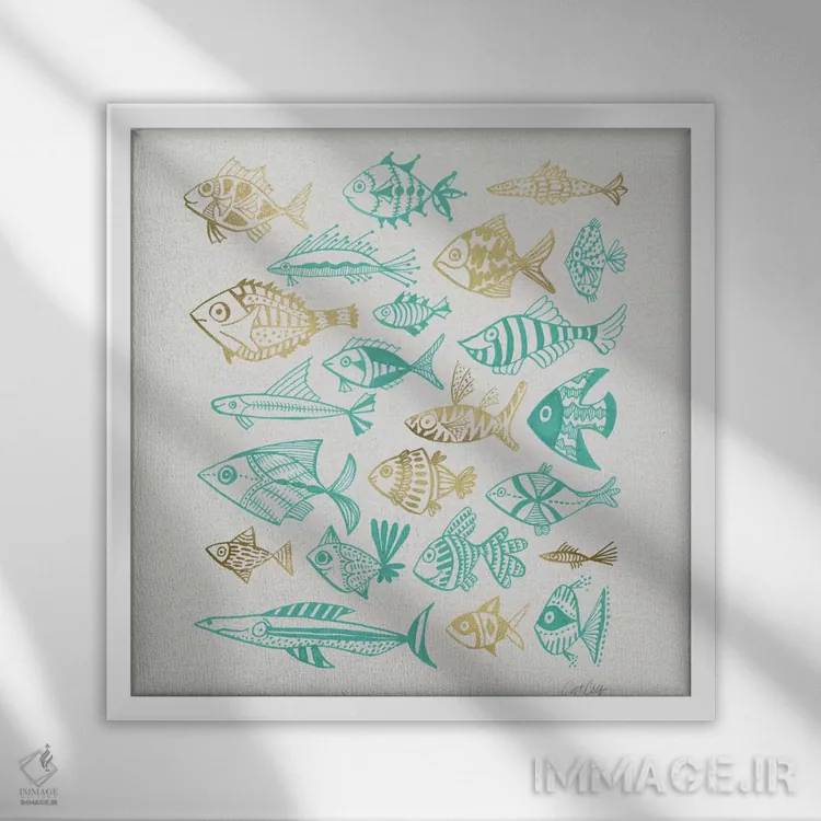 تابلو دکوراتیو نقاشی ماهی فیروزه ای طلایی اثر کت کوکیلت
