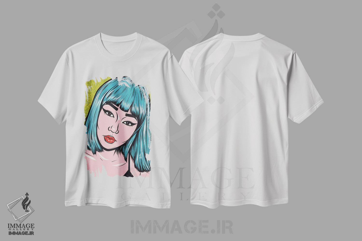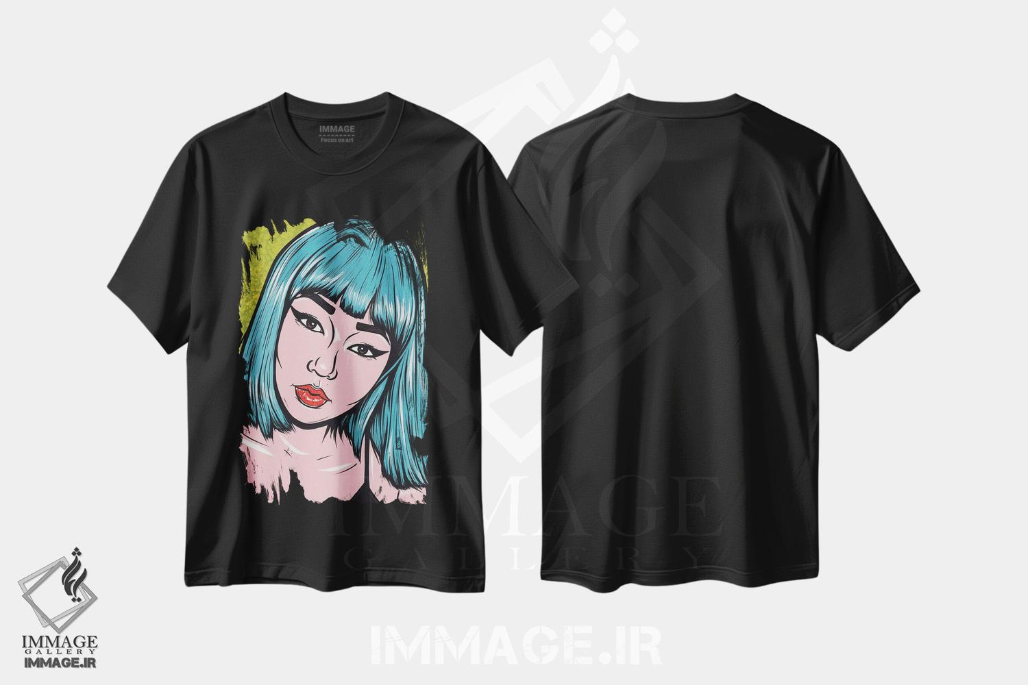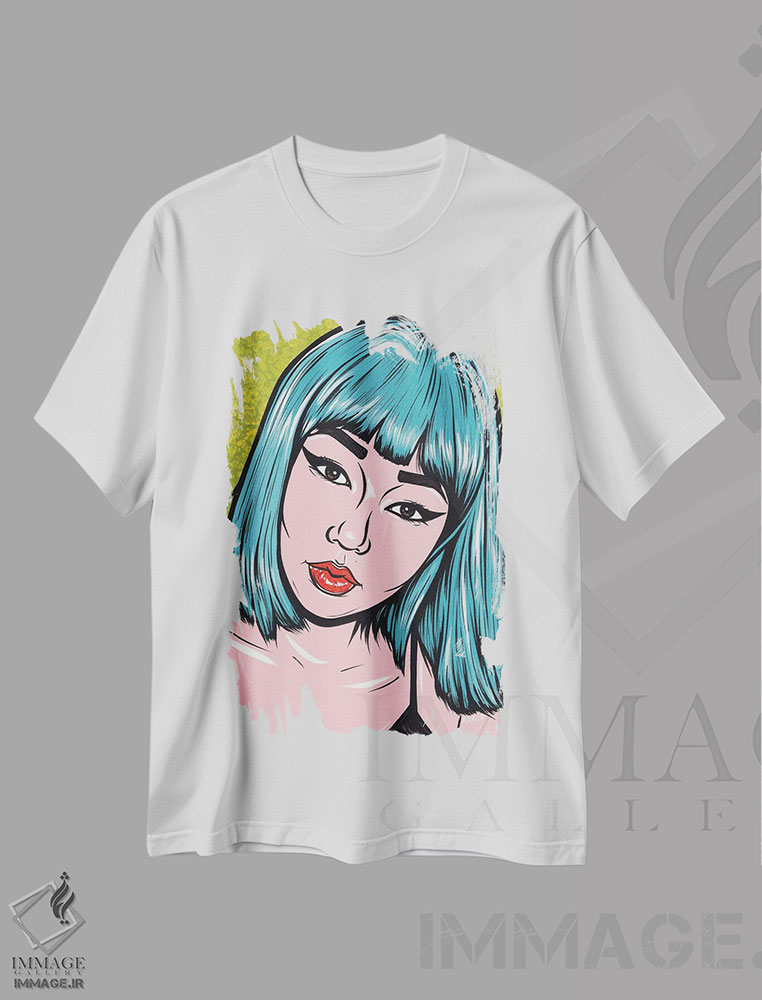 تیشرت طرح دار دختر کمیک با چتری آبی، هنر فاخر معاصر اثر آلیسون گاتچل | immage.ir
