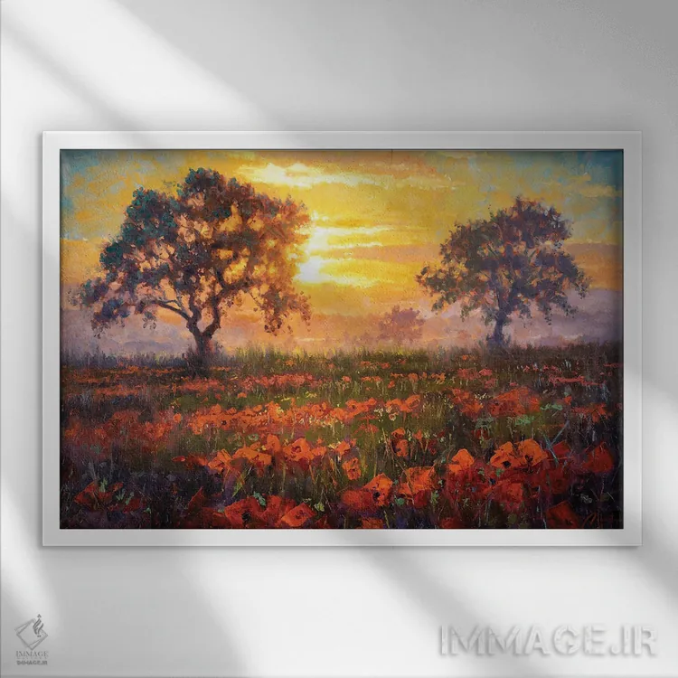 براساس پالت گرم اثر، قاب تیک گرم (چوبی) پیشنهاد اول است و مشکی مات (فریم متوسط) مکمل. برای سفارشهای پروژهای با ابعاد و قابهای اختصاصی با ایماژ در تماس باشید.