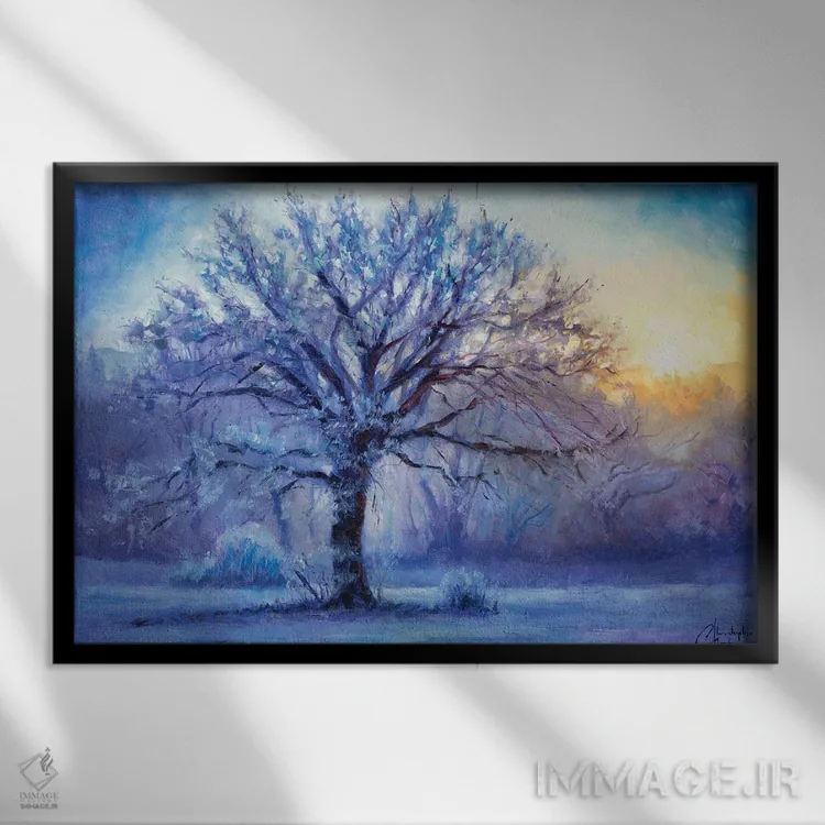 براساس پالت سرد اثر، قاب بلوط روشن (چوبی) پیشنهاد اول است و استخوانی ملایم مکمل. برای سفارشهای پروژهای با ابعاد و قابهای اختصاصی با ایماژ در تماس باشید.