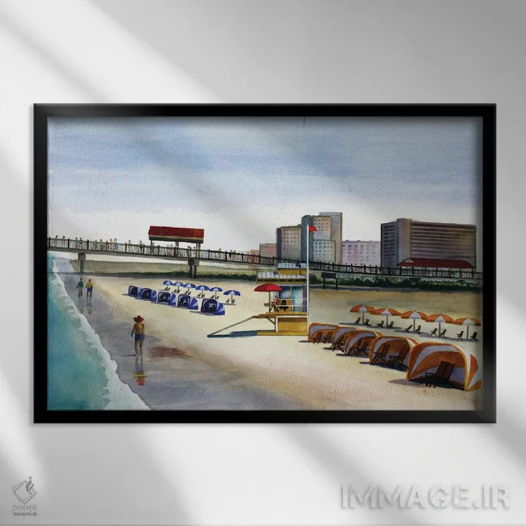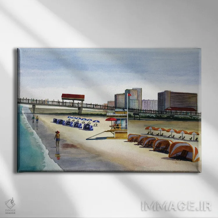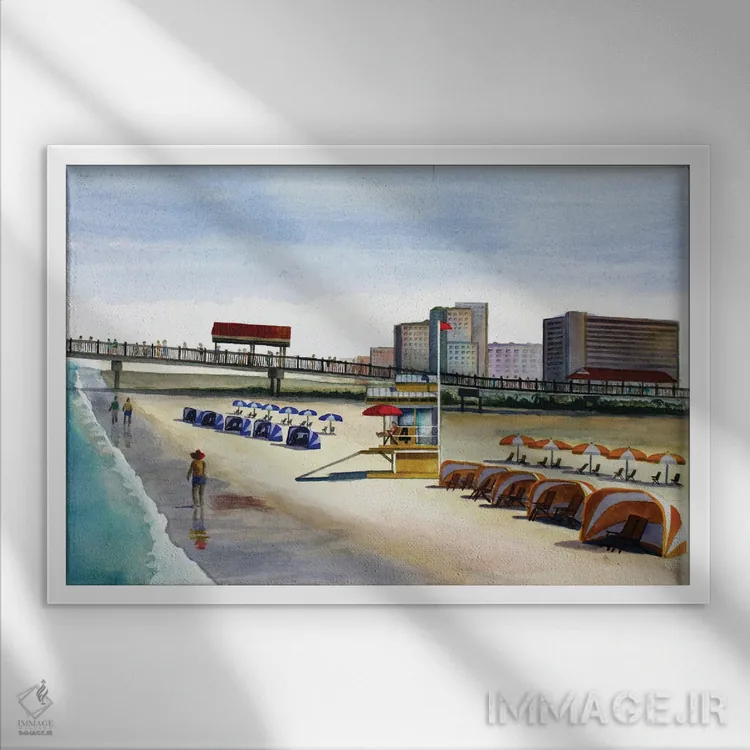 «اسکلهٔ پیادهروی ساحلی» اثرِ «کوری کلیفورد» در فضای دکور ساحلی، کنار پارچههای روشن و اکسسوریهای طبیعی (حصیر/چوب) عالی هماهنگ میشود.