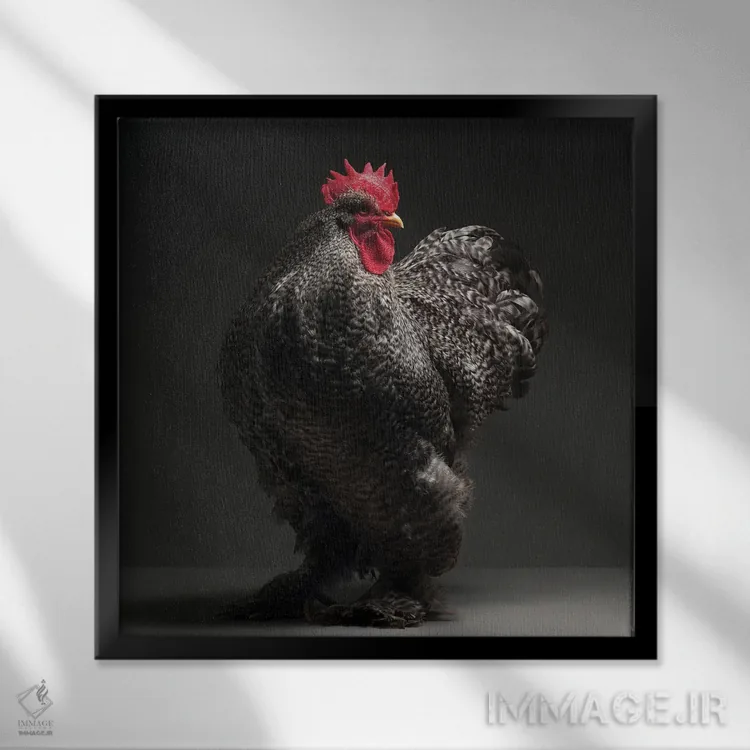 «کوشین (نژاد مرغ)» اثرِ «چیکن (اثر هنری با لحن شوخ)» از آن کارهاییست که بافت و جزئیات را طوری نشان میدهد که نگاه میماند؛ برای فضاهای روستیک یا بوهو انتخاب خوبیست. برای دیوار گالریوار هم گزینهٔ خوبیست.