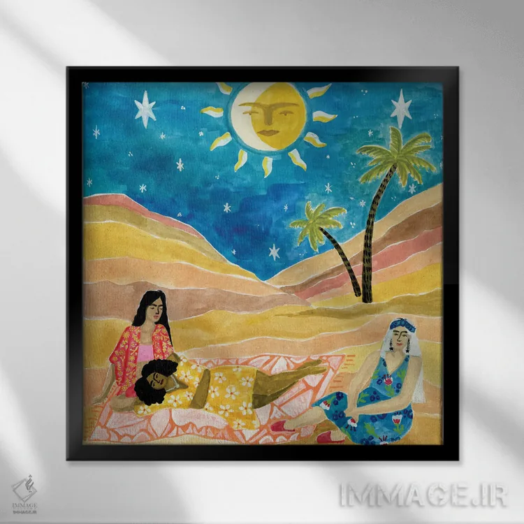 براساس پالت ترکیبی اثر، قاب تیک گرم (چوبی) پیشنهاد اول است و مشکی مات (فریم متوسط) مکمل. برای سفارشهای پروژهای با ابعاد و قابهای اختصاصی با ایماژ در تماس باشید.